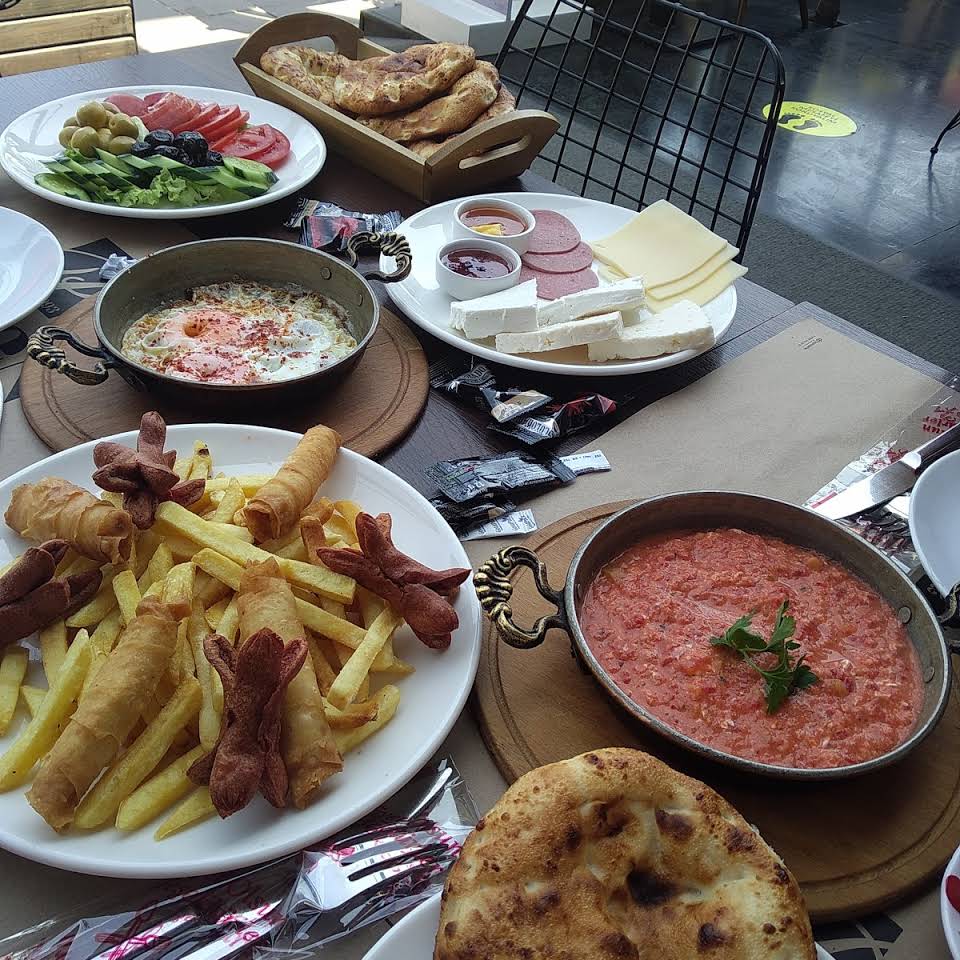 The menu leans toward simple but thoughtfully prepared items. Breakfast plates come with enough variety and volume to satisfy; customers often appreciate that portions stretch to cover two people without leaving a hunger gap. Light savory options like gözleme arrive with fresh salad and tomato-potato sides, anchoring the meal in familiar local flavors. Drinks range from traditional Turkish coffee served with a milky twist to espresso-based options like mocha and frappé that appeal to a younger, style-conscious crowd.